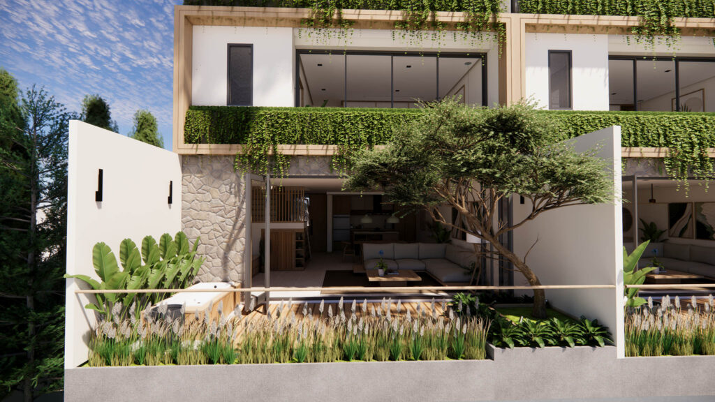 The architecture of KĀHLĪ reinterprets Japandi for the tropics. Clean horizontal lines meet deep eaves and open courtyards. Materials are tactile yet timeless, timber soffits, natural stone, smooth plaster, and warm neutral tones. Each form is simple, yet layered with subtle detail, encouraging reflection and rest.